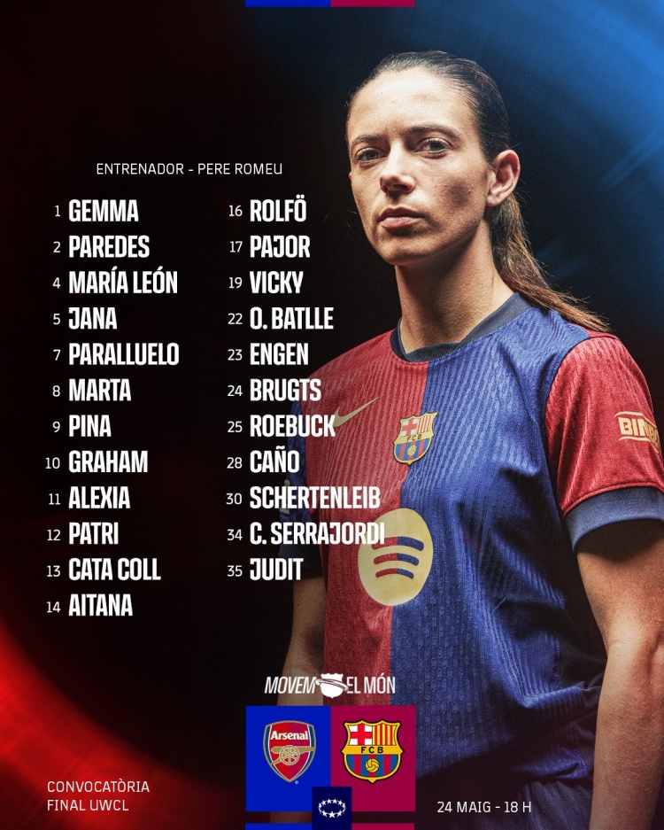 将对阵阿森纳!巴萨女足欧冠决赛名单:邦马蒂、普特拉斯领衔