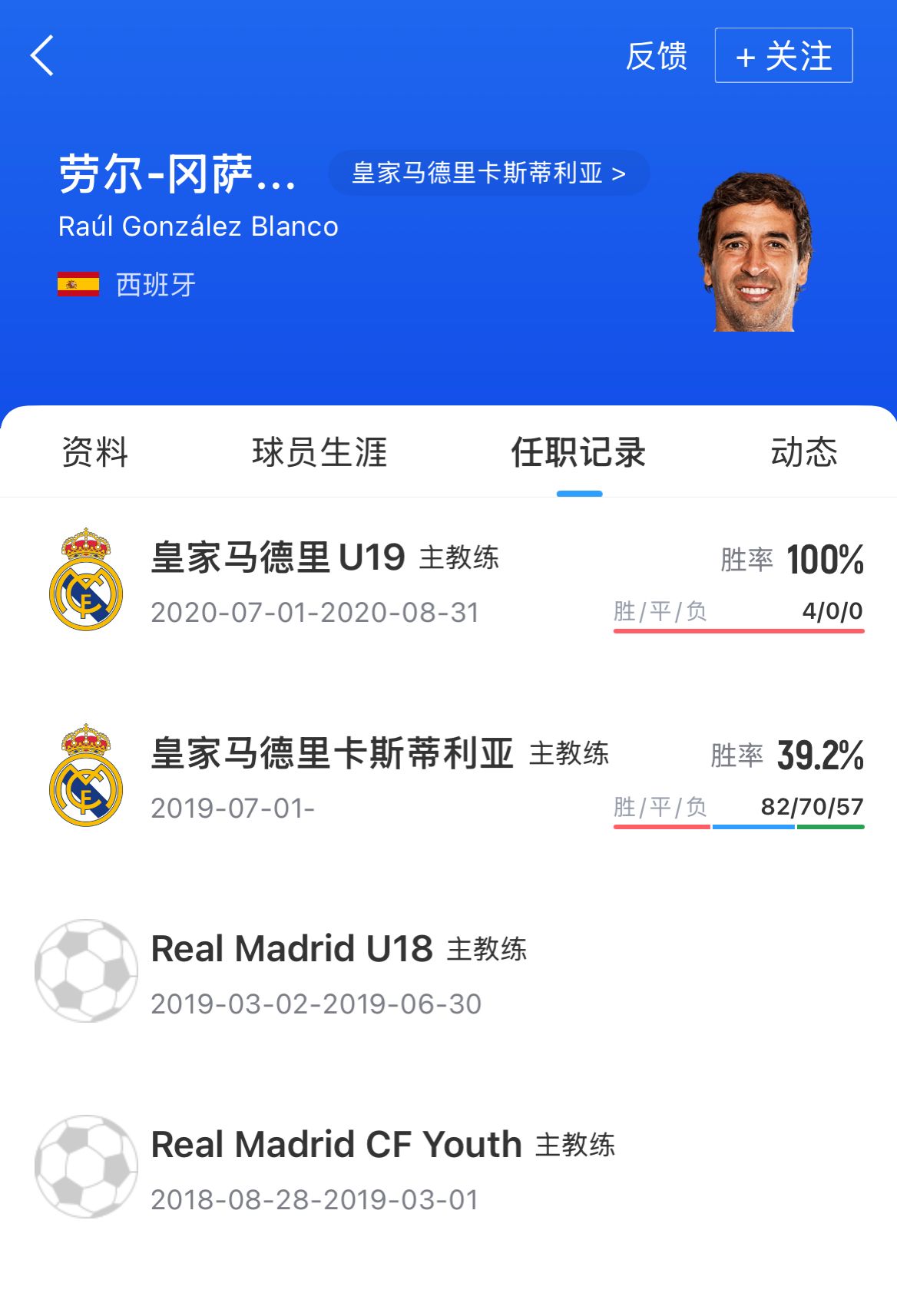 05月27日讯 皇马官方今天宣布,47岁的劳尔不再担任二队卡斯蒂亚的主帅,劳尔就此结束了7年的皇马各级梯队执教生涯。