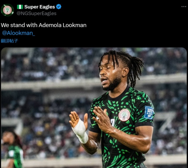 国家队出面!尼日利亚官方社媒声援:我们与卢克曼同在