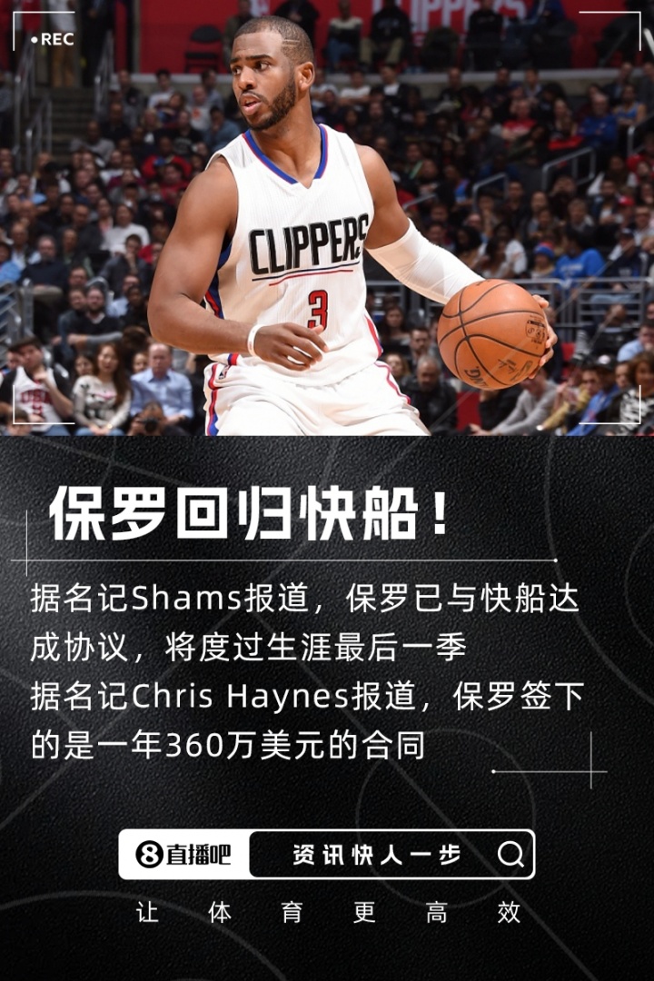 据Shams报道,有多支球队追求过保罗,但保罗最终选择了曾经效力过的、实力强劲的快船。